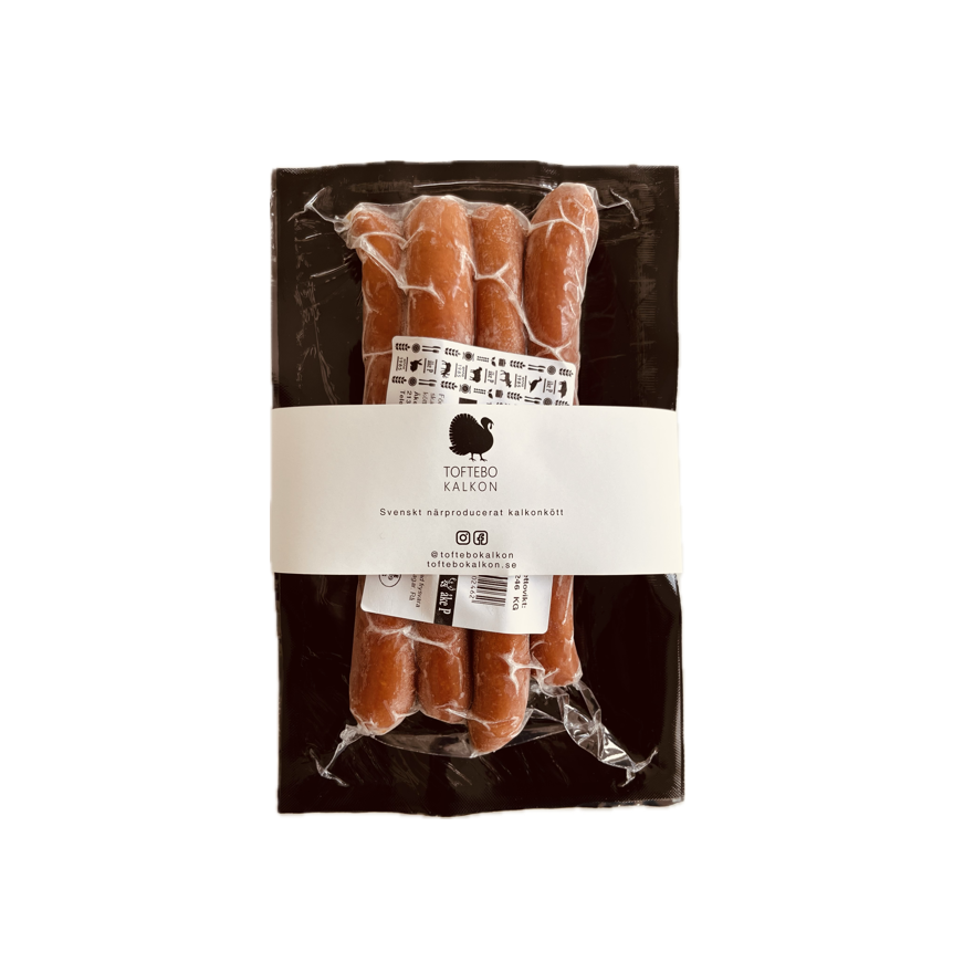 Klassisk wienerkorv med hög kötthalt, 80%. Korvarna är gjorda på endast kalkonkött. De är goda att koka, steka eller att lägga på grillen. Säljs frysta.